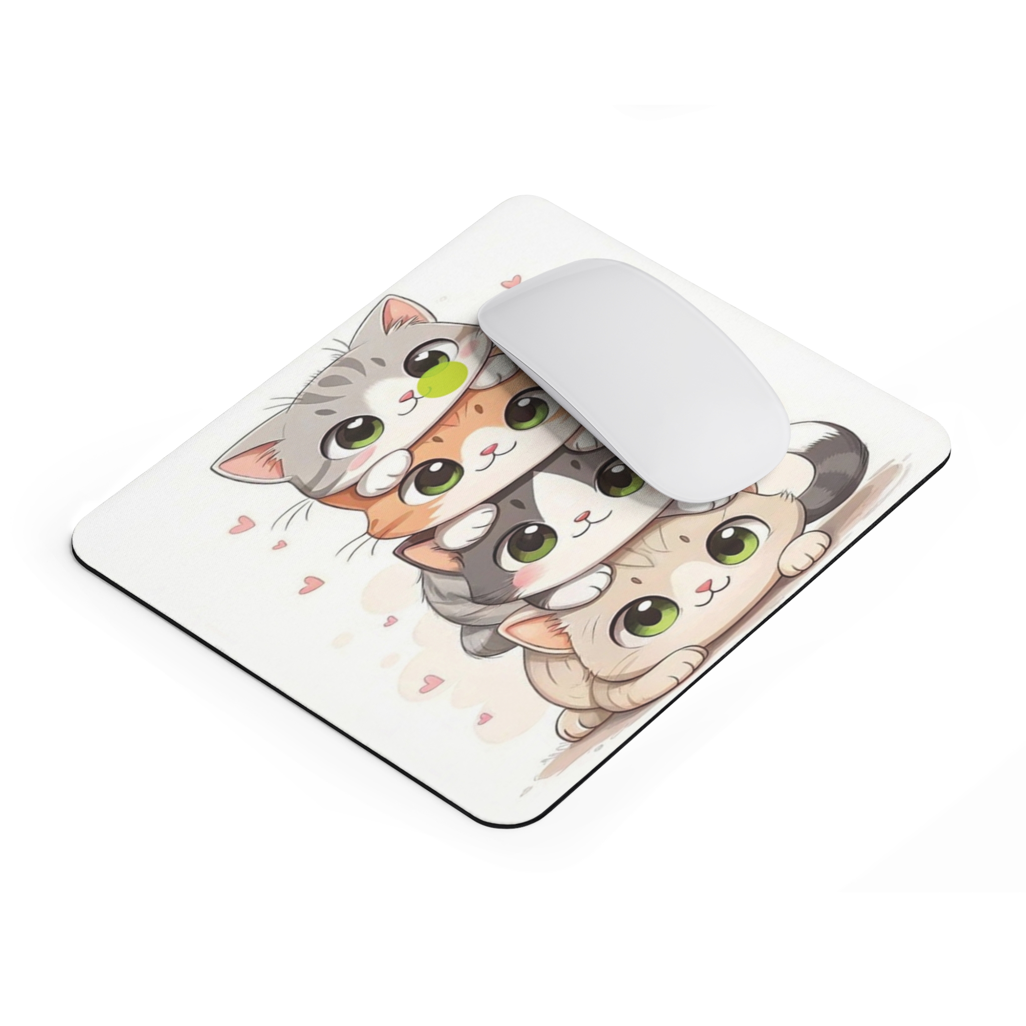 cute kawaii cat mouse pad with cartoon kittens and anti slip rubber base